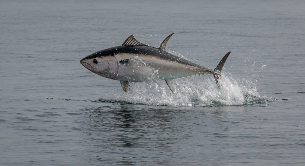 Bluefin are a pelagic, apex predator, hunting in packs across oceans. These giants are thought to live 30-40+ years. At the top of the food chain, they are seen as an indicator of a healthy ecosystem, evidence of the presence of plentiful prey species needed to support them. In 2023, the UK government issued new licences for fishers to line-catch bluefin in our waters, both for sport and the food industry. As a result, British line-caught, or, “local” tuna, can once again be seen on menus in the trendiest restaurants in London.