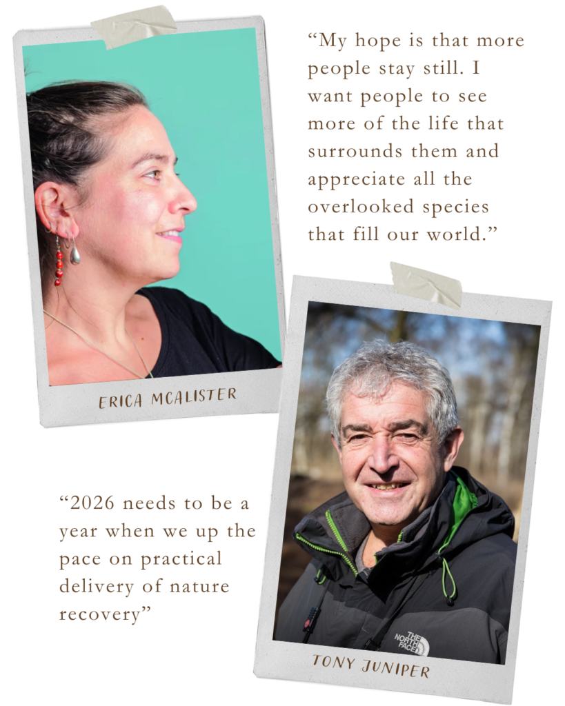 “2026 needs to be a year when we up the pace on practical delivery of nature recovery. There are loads of initiatives underway among farmers, nature groups, local government, private sector companies and infrastructure providers, all pointing in a positive direction. I’m hoping we’ll see more of all that, despite the turbulence and headwinds.”