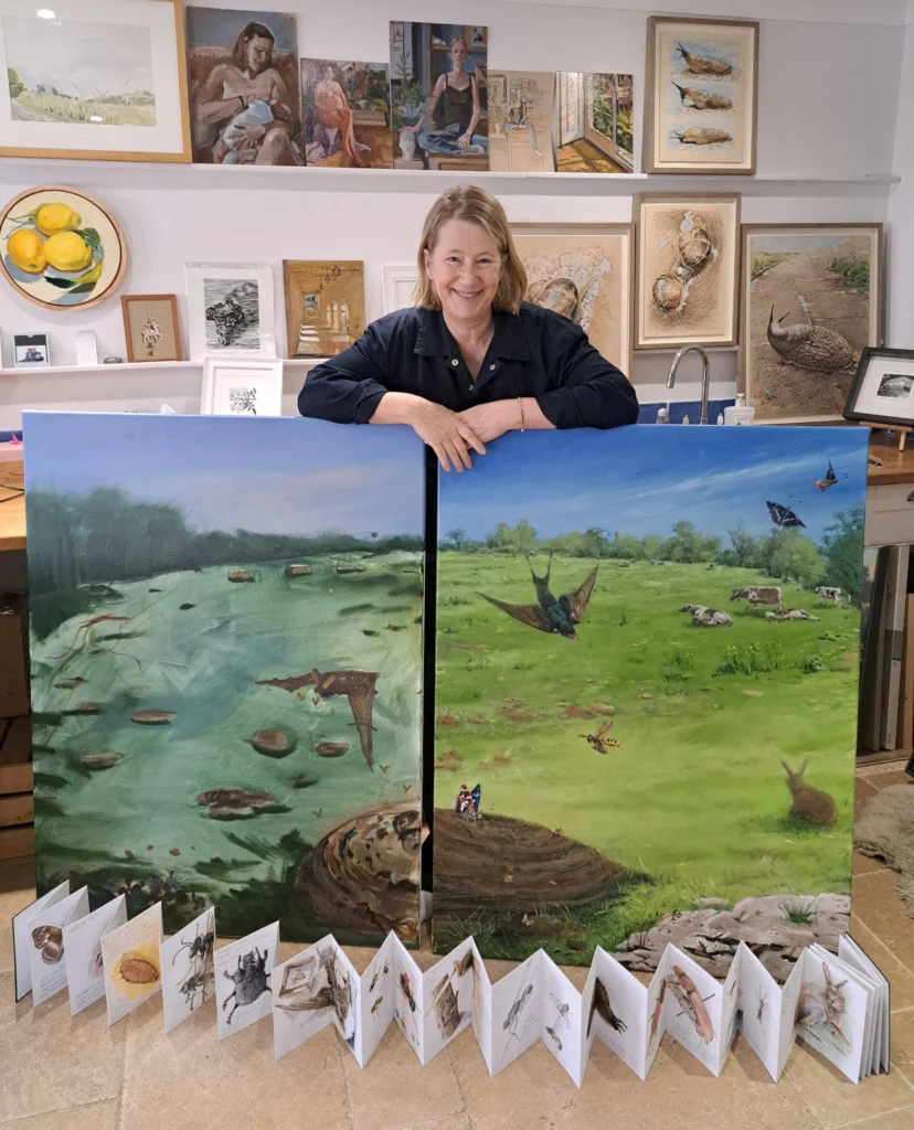 Step into a fascinating intersection of art, science, and conservation with Gail Reid’s latest exhibition, Dungscape. Drawing on museum natural history collections, field research, and meticulous study, Reid reveals the astonishing biodiversity thriving in the unlikeliest of places – the dung of Old English Longhorn cows at Knepp.