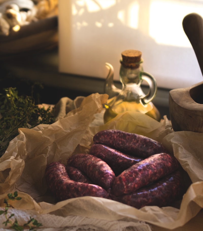 The addition of organic buckwheat flour as a binder has improved the texture and has the added benefit of being gluten-free. We’ve also added a little Tamworth pork to our naturally lean venison mince to produce an even more succulent sausage.